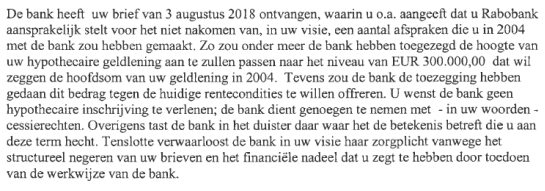 2.14.Bij brief van 8 augustus 2018 heeft Rabobank, voor zover van belang, het volgende geschreven aan [eiser] :