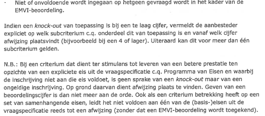 3.2.2.Het gunningscriterium is blijkens § 7.7.2 van de Aanbestedingsleidraad dat van de economisch meest voordelige inschrijving (EMVI) met de beste prijs-kwaliteitsverhouding. Dit betreft de inschrijving met de laagste als volgt te bepalen fictieve inschrijvingsprijs: