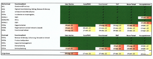 2021 overeengekomen tweede Tussentijdse rapportage naar DJI gestuurd. Dit document bevat onder meer het volgende overzicht van het BVJ met daarop de inmiddels in gebruik genomen functionaliteiten, waarbij DJI releases DD5a, DD5b en DD5c niet Voorlopig heeft Geaccepteerd. Het overzicht bevat ook de planning van de nog niet opgeleverde functionaliteiten:
