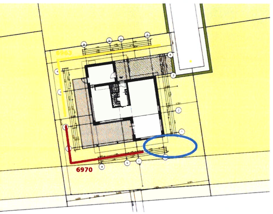2.6.De in de koopovereenkomst bedoelde situatietekening ziet er als volgt uit (waarbij de kantonrechter het perceel van Eiser 1 met een pijl heeft aangeduid):