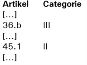 In onderstaande tabellen wordt per artikellid of -onderdeel van bijlage XIIIa van de Arbeidsomstandighedenregeling aangegeven welke categorie van afwijking van toepassing is.