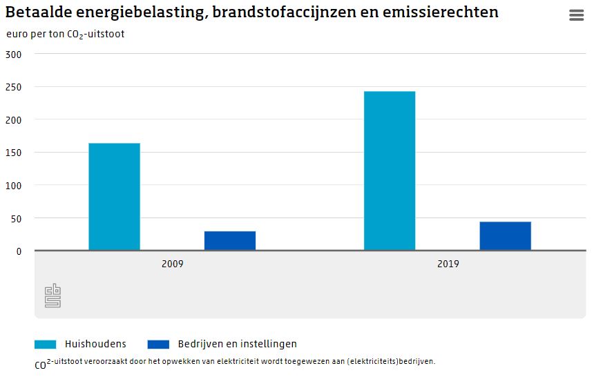 Het principe “De vervuiler betaalt” gaat in Nederland lang niet altijd op. Zo waren de huishoudens in 2019 goed voor 56 procent van de opbrengsten uit de energiebelasting, de emissierechten en de brandstofaccijnzen, de belastingen die het meest direct gerelateerd zijn aan CO2-emissies. In datzelfde jaar waren zij echter slechts verantwoordelijk voor minder dan een kwart van de CO2-uitstoot in Nederland. Deze verhouding is in de laatste tien jaar nauwelijks veranderd, en wordt deels veroorzaakt doordat de tarieven van de energiebelasting voor kleinverbruikers veel hoger zijn dan voor grootverbruikers. Een andere oorzaak dat de grootste vervuiler niet altijd het meeste betaalt, is dat sommige brandstoffen, in tegenstelling tot autobrandstoffen, niet of in geringe mate belast worden. Dit geldt bijvoorbeeld voor stookolie en gasolie voor schepen en kerosine voor vliegtuigen. Hierdoor is binnen de transportsector het vervoer over land goed voor nagenoeg alle accijnsopbrengsten, terwijl de scheepvaart en de luchtvaart verantwoordelijk zijn voor de meeste CO2-uitstoot.