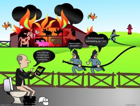 “Daarnaast hebben we het BrandRisicoKompas Veestallen ontwikkeld”, vertelt Van der Graaf. “Dit is een praktisch, digitaal beoordelingsinstrument dat helpt om risico’s systematisch in kaart te brengen en te beoordelen. Belangstellenden kunnen het BrandRisicoKompas aanvragen via het contactformulier op de kennispagina Brandveiligheid veestallen.”