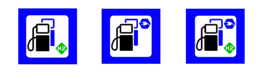 Er komen in Nederland langs de snelweg nieuwe borden te staan die aangeven of er bij een tankstation waterstof verkrijgbaar is.