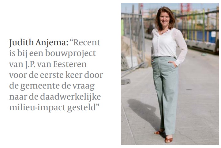 Recent is bij een bouwproject van J.P. van Eesteren voor de eerste keer door de gemeente de vraag naar de daadwerkelijke milieu-impact gesteld. Judith: “Wij hadden daar op dat moment geen intern proces voor en moesten echt op zoek naar de juiste gegevens. Uiteindelijk hebben we een goed gesprek met de gemeente gehad en kunnen we door met de bouw.” Uit een aangescherpte berekening richting oplevering blijkt inderdaad dat een betere prestatie is geleverd dan de MPG bij vergunningverlening. Dat komt voornamelijk door een aantal aanvullende duurzaamheidsmaatregelen die zijn genomen, zoals CO2-arm beton.
